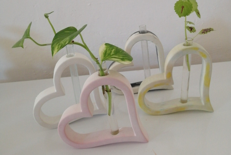 گلجا طرح قلب با شیشه ارتفاع ۱۶سانت از جنس سنگ مصنوعی با کیفیت و استحکام بالا ،مناسب تکثیر گیاه،دکوراسیون،هدیه و ولنتاین