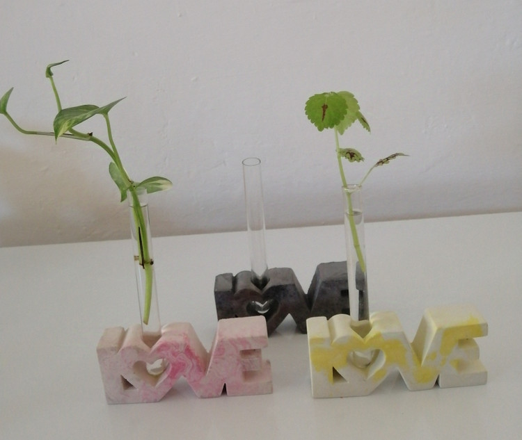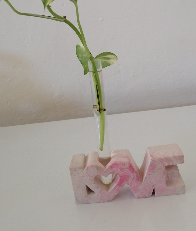 گلدان گلجا مدل love با شیشه ارتفاه۱۰سانت سنگ مصنوعی قابل شستشو