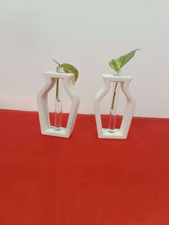 گلجا مدل کوزه با شیشه ارتفاع ۱۶سانت از جنس سنگ مصنوعی مناسب برای تکثیرگیاه،دکوراسیون،هدیه و ولنتاین